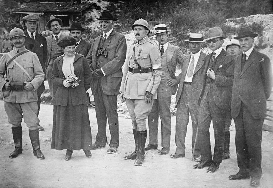 National Geographic’s Harriet Chalmers Adams with journalist Charles Edward Russell (third from right) and others in Rheims, France, ca. 1916. Library of Congress, Prints and Photographs Division.